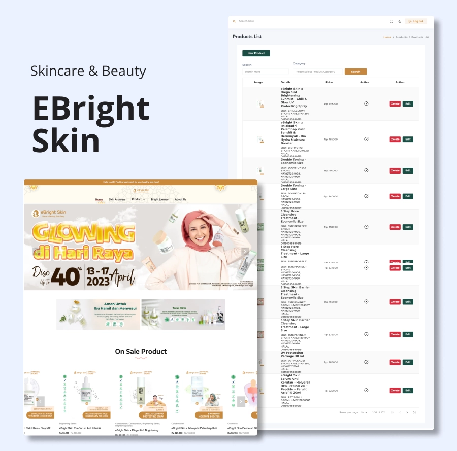 Tambah, edit, atau hapus produk dengan dashboard yang praktis dan terstruktur.