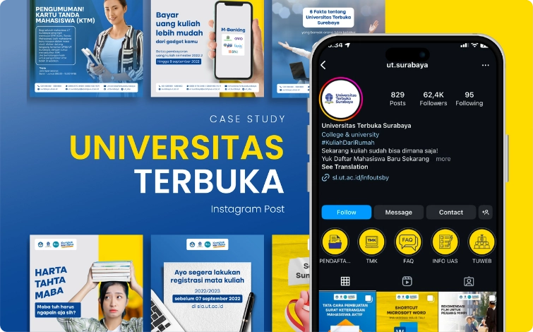 Strategi konten yang relevan dan menarik, dengan desain visual & copywriting yang mampu membangun kepercayaan audiens.